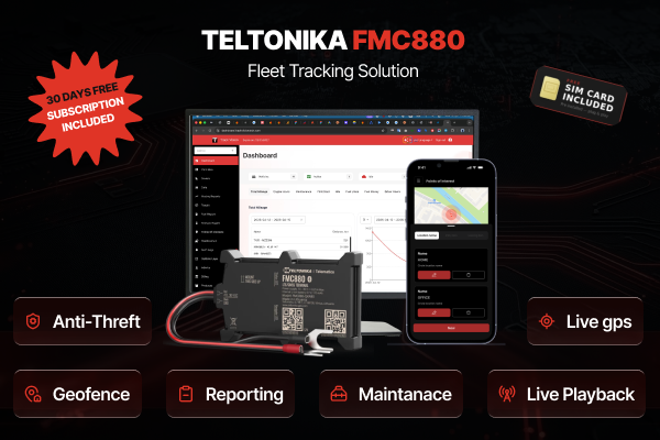 Scenarios: Green Driving, Over Speeding detection, Jamming detection, GNSS Fuel Counter, DOUT Control Via Call, Excessive Idling detection, Unplug detection, Towing detection, Crash detection, Auto Geofence, Manual Geofence, Trip..